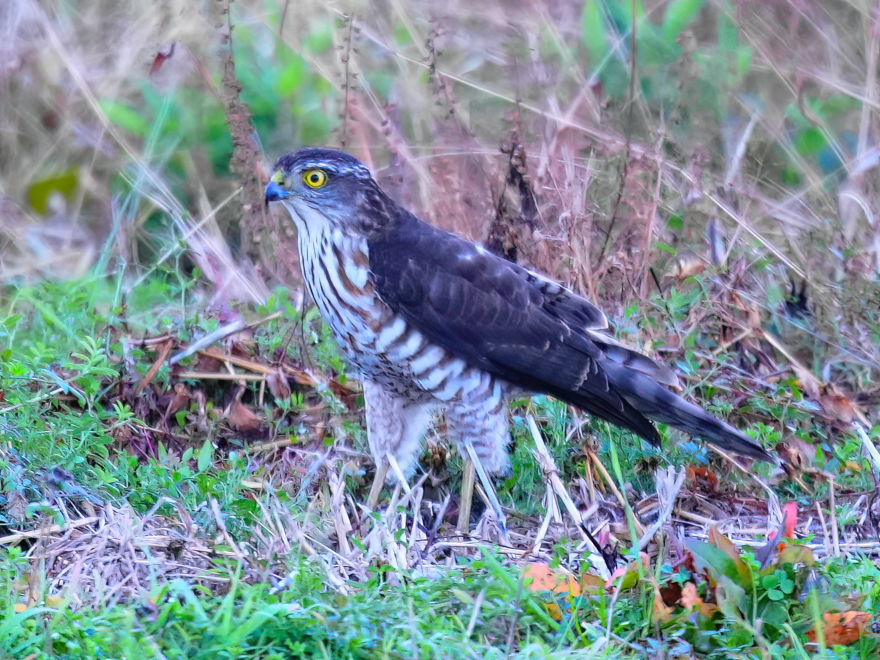 2023.12.15奈良市北ノ庄「ツミ」 2023 12/16 鳥を見よ! 2023年12月16日 仕事の途中で 2023.12.15奈良市北ノ庄 珍しい鳥を発見。 鷹だと思ったのですがちょっと小さい。 鳩より少し大きいくらい。 胸の模様も粗い。 ツミでしょうか・・ 田んぼに居たので驚きました。 鳥を見よ! よかったらシェアしてね! URLをコピーしました! URLをコピーしました!
