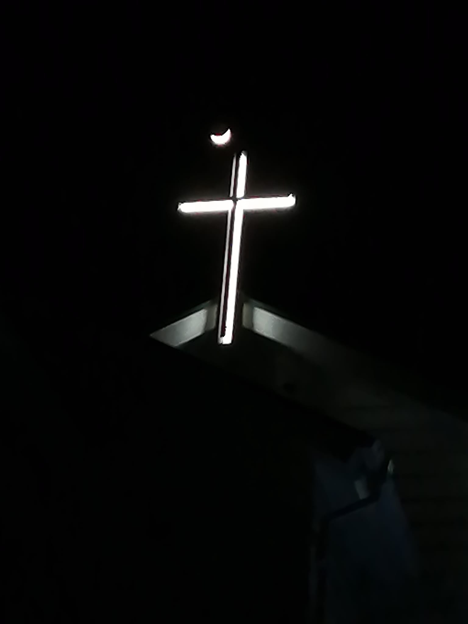 上弦の三日月と🌙 闇に光り輝く十字架✝️